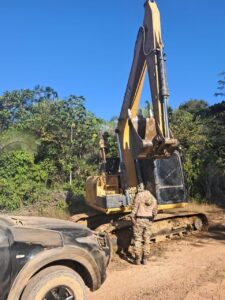 Em área de difícil acesso, as equipes localizaram maquinários de grande porte, veículos, motores estacionários, cavas de extração de ouro e acampamentos de apoio aos trabalhadores. Foram inutilizados no local seis escavadeiras hidráulicas, quatro mil litros de combustível e dez motores-bombas, conforme previsto em lei, diante da impossibilidade de remoção dos equipamentos.